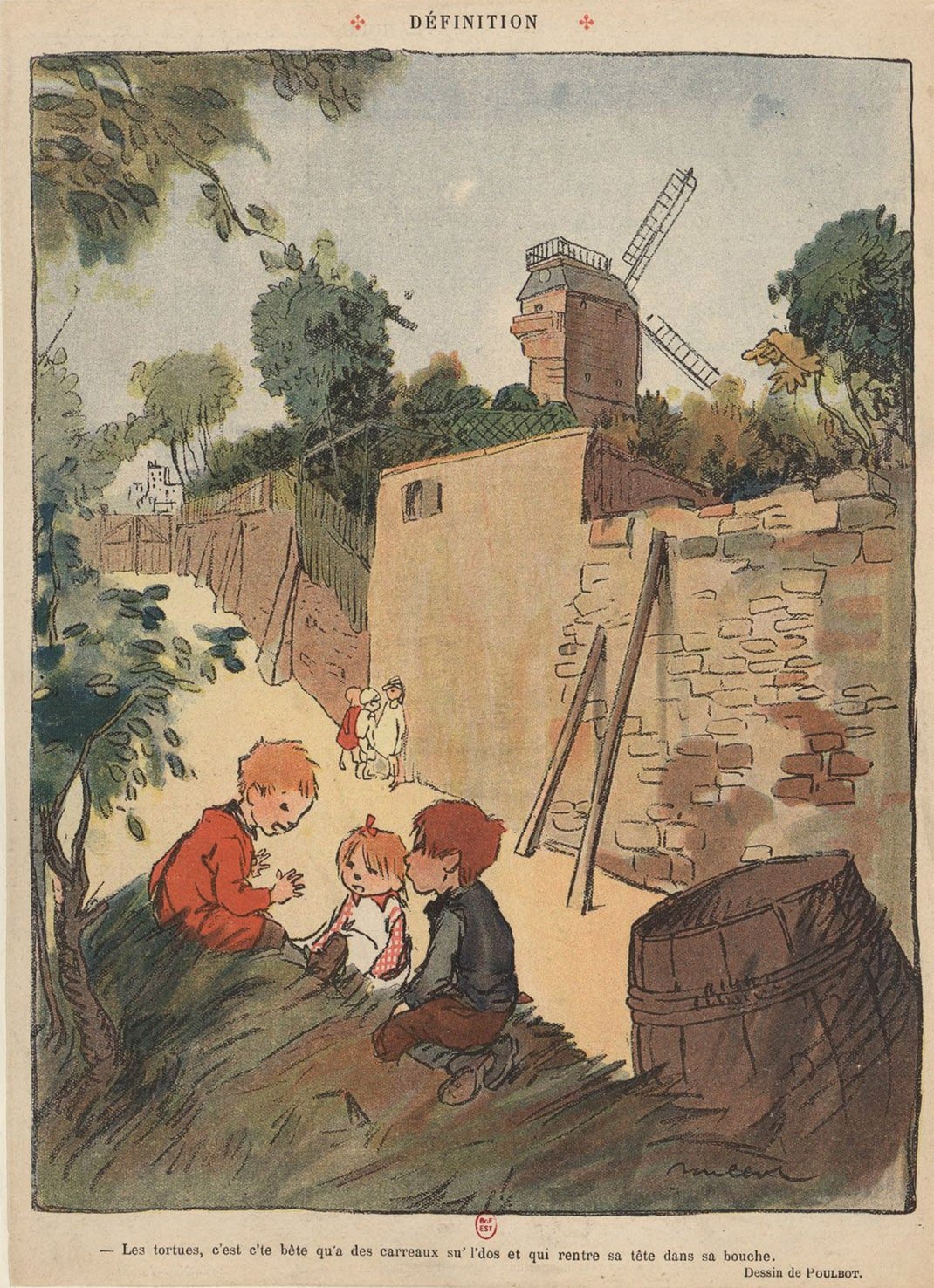 第一次世界大戦の勃発とともに彼の芸術は変容し、「プールボ」は愛国的な象徴となり、フランス国民の回復力を体現する存在となりました。彼はモンマルトルの丘(「ラ・ビュット」)を深く愛し、「モンマルトル共和国」を共同創設する偉大な篤志家でもありました。彼が描き続けた困窮する子供たちを救うため、彼は生涯を通じて彼らのための診療所を設立したのです。